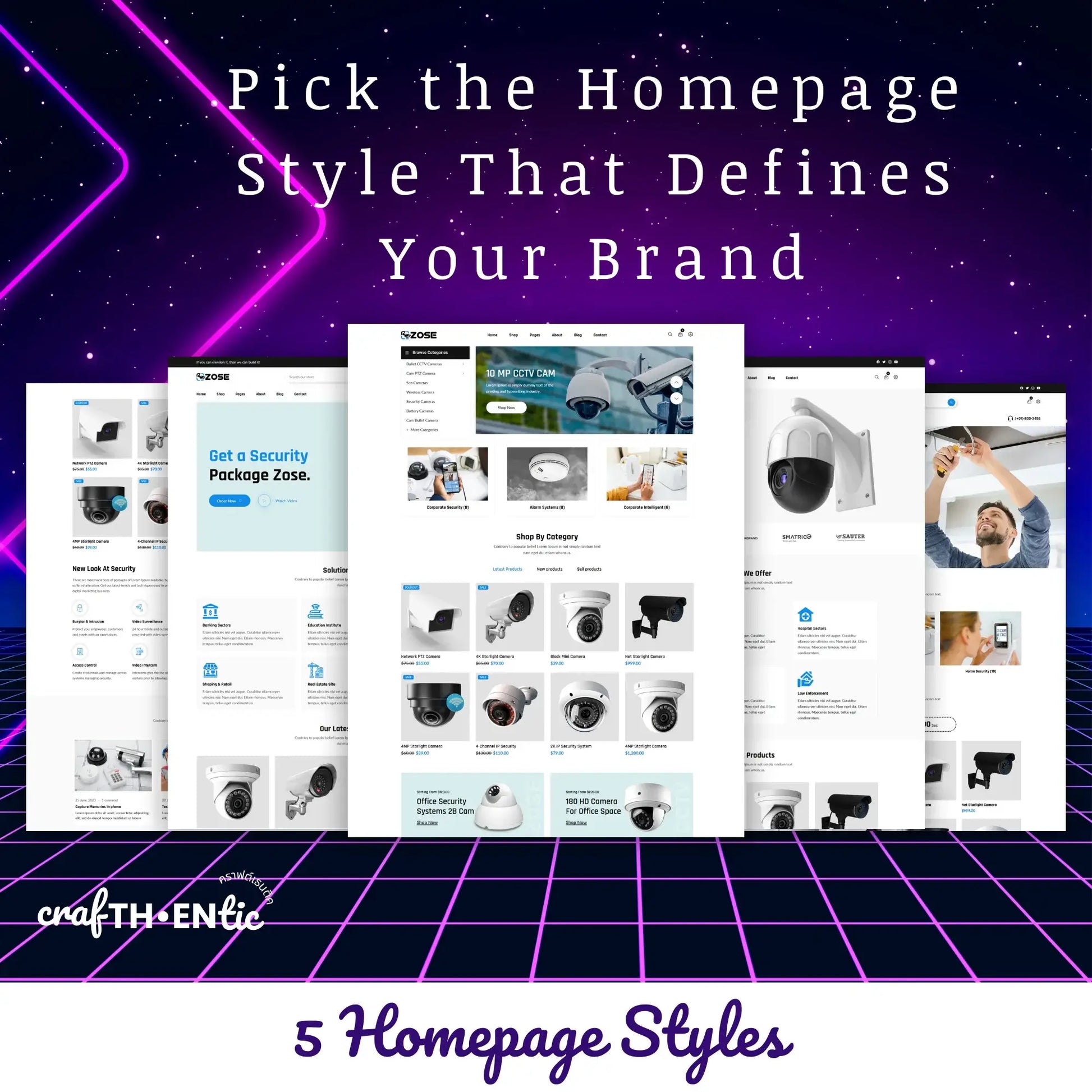 🎥 5 Professional Homepage Styles – Pick the perfect layout to present your CCTV and security products in a clean, user-friendly way.