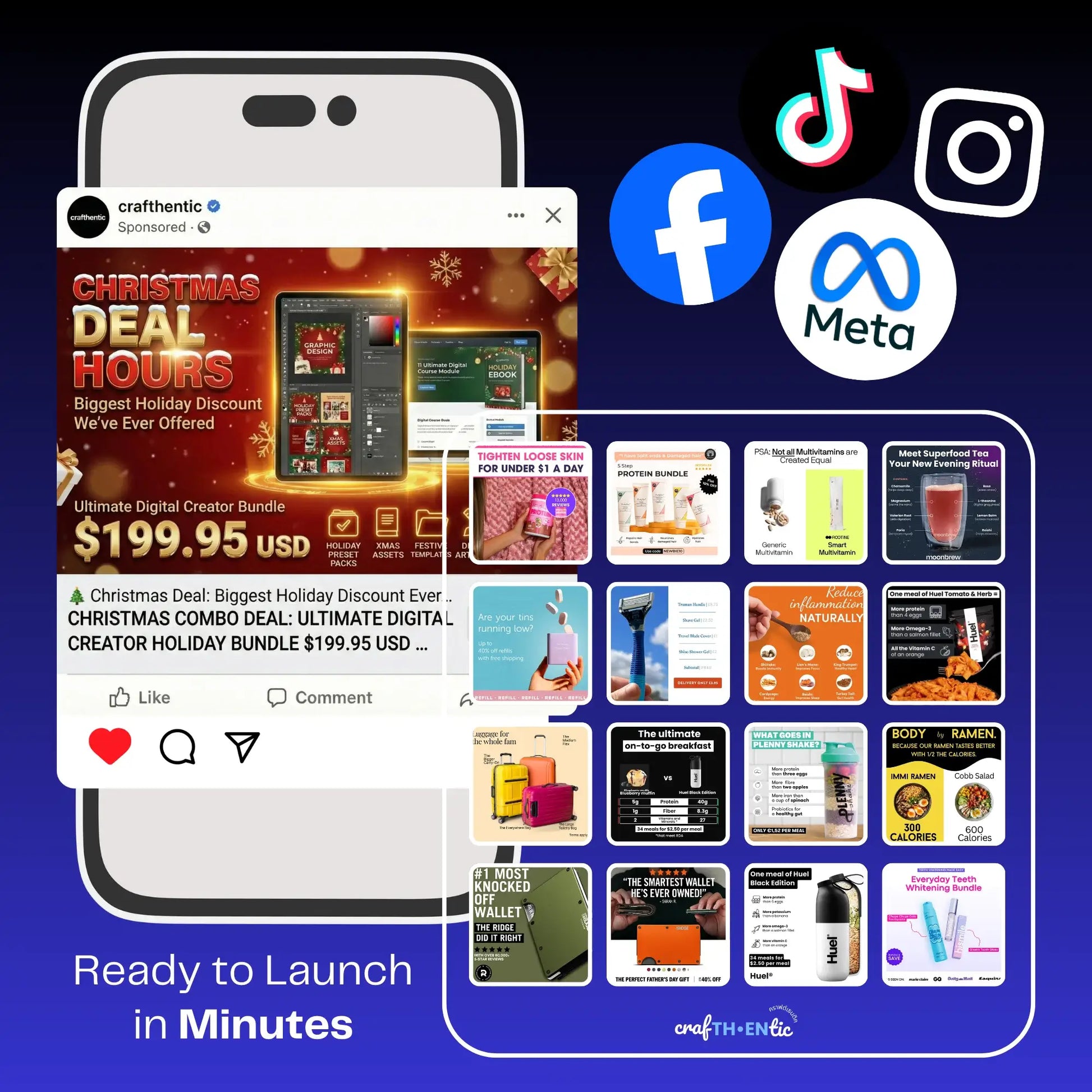The ultimate library of scroll-stopping META ads built to dominate Facebook, Instagram, and social feeds. Proven to grab attention, spark clicks, and drive sales across every niche imaginable.